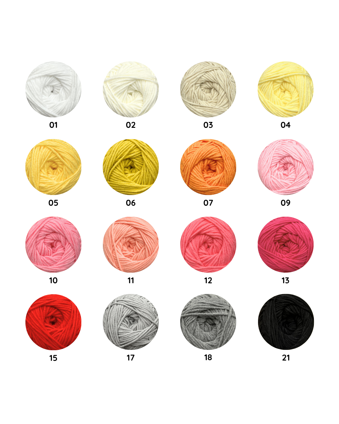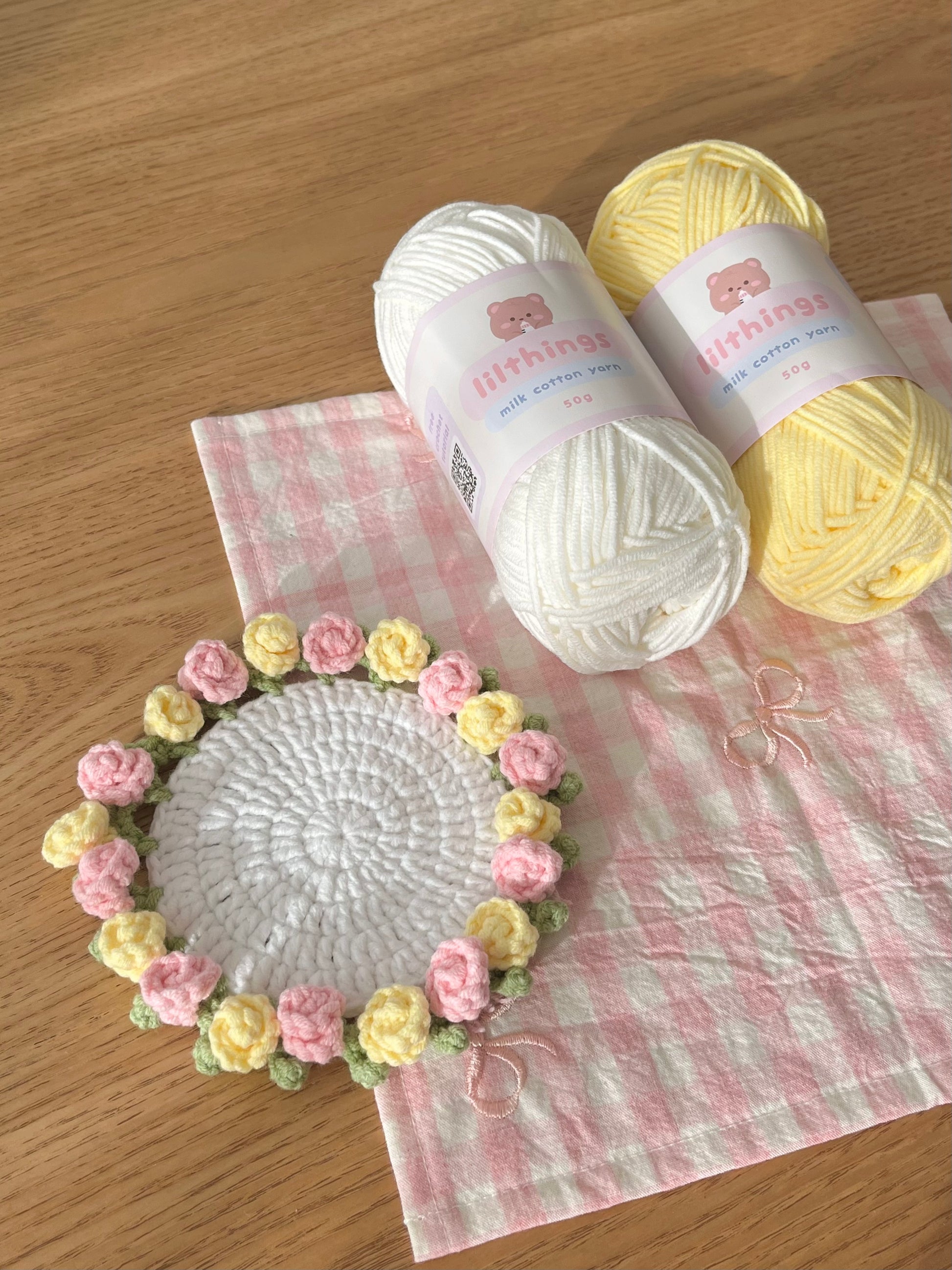 Our Milk Cotton Yarn is a premium dreamy blend of 60% cotton and 40% acrylic, giving you the perfect softness for your project. It’s light, smooth, and easy to work with—great for both beginner-advanced crochet! Whether you're making cute amigurumi dolls, keychains, home decor or bags, this yarn has got you covered. Pick your favourite colours and start creating!